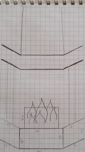 I measured out how much space I had in the corner and decided that a corner fireplace was just the ticket. I scored a great lightning deal on Amazon for this electric fireplace,* so I knew it was kismet. Reminds me of when we see Sirius Black in the Gryffindor common room. I used graph paper to plot out what the fireplace could look like and then drew out what it would look like from the front.