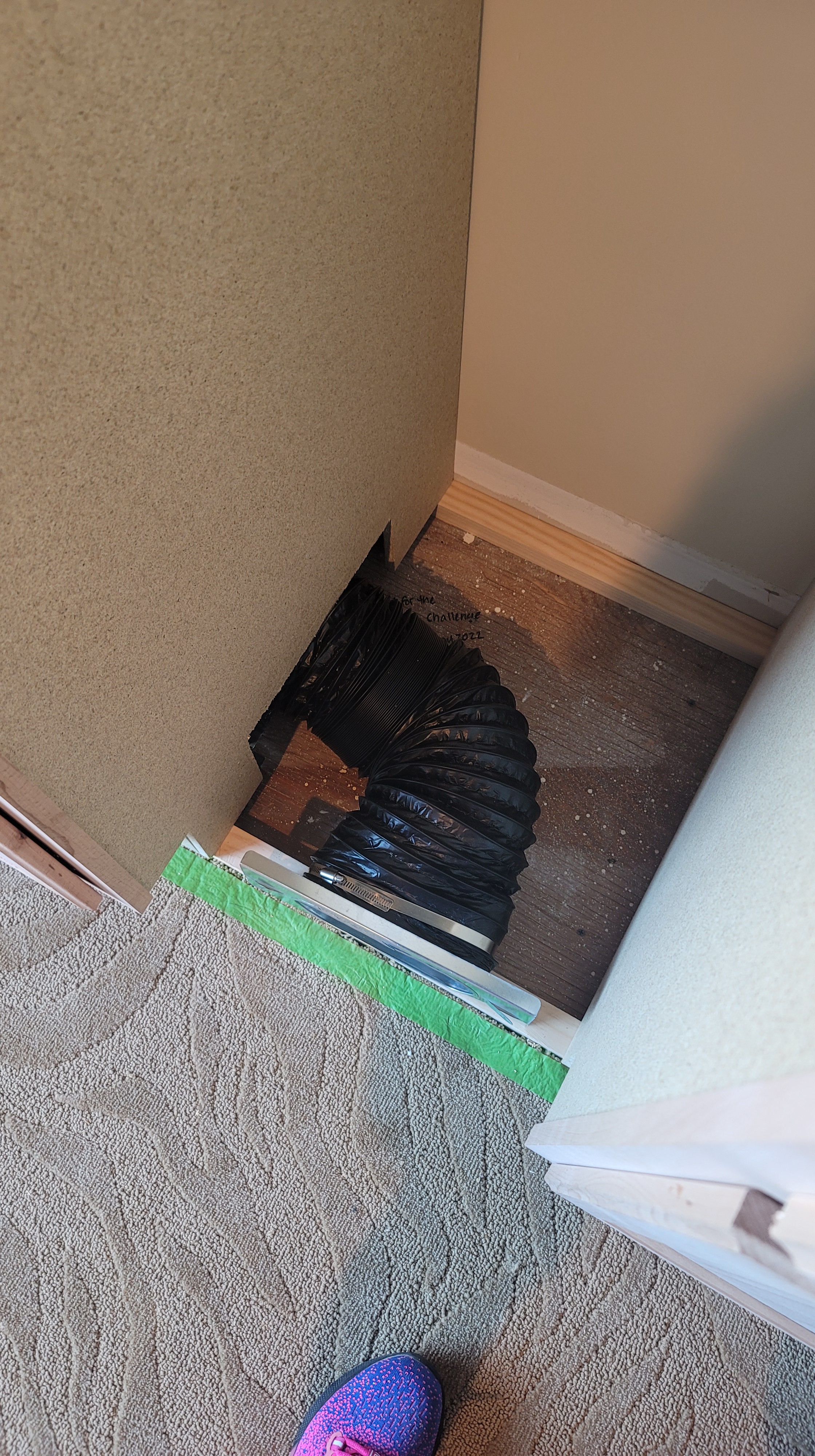 - Carpet pulled up to make room for the built-ins (we’ll replace the flooring at some point, but it’s not in the budget for now)